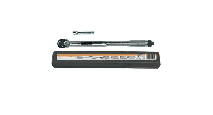 Momentsleutel met 1/2″ aandrijfvierkant, omschakelbaar, bereik van 40 tot 210 Nm, TÜV GS gekeurd. Wordt inclusief 120 mm verlenging in kunststof cassette geleverd.